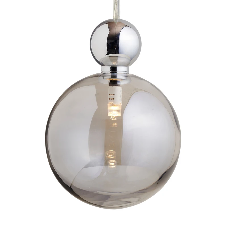 EBB & FLOW Uva L hanging light, ball silver smoke grey