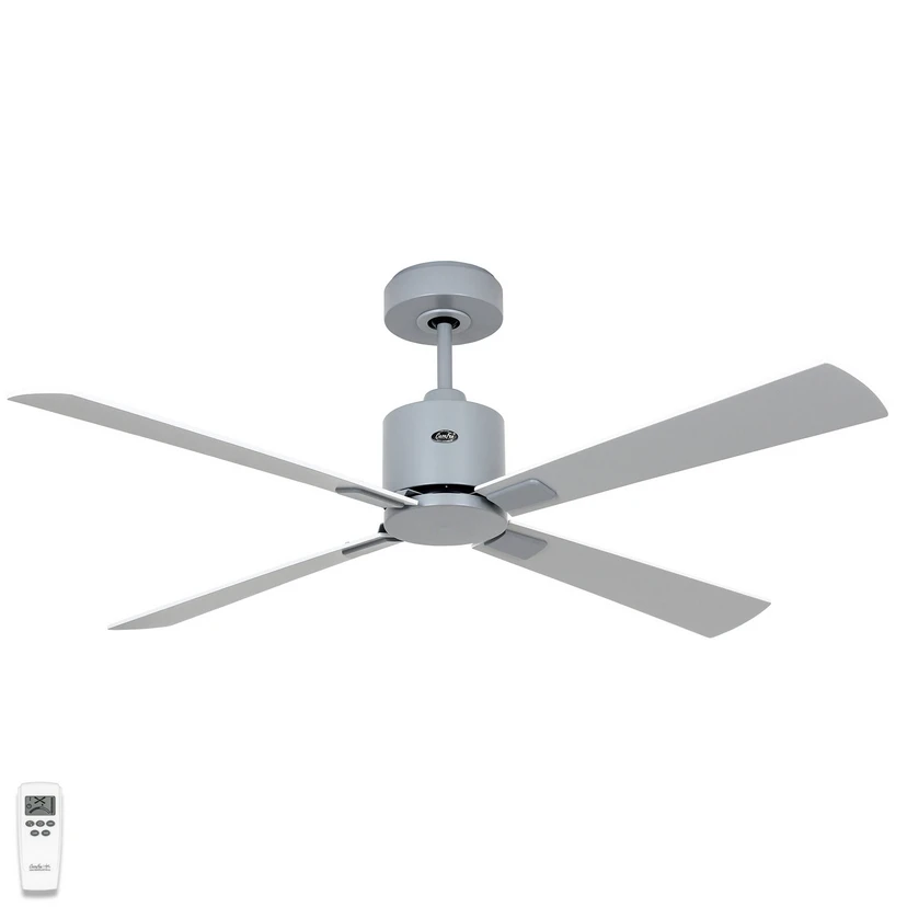 Eco Concept ceiling fan with variable appearance, Ø 132 cm This ceiling fan not only shines with contemporary functionality, but also with various customisation options for its appearance. For example, Eco Concept can be operated with two, three or four blades, the two sides of which have a different finish. Functions Eco Concept offers six speed levels. Thanks to the forward and reverse function, energy costs can be saved by circulating the room air in a targeted manner. With the slow motion setting, the sleep timer and the quiet running of the motor with energy-saving DC technology, the ceiling fan is particularly pleasant to use. All functions - including those of the optional light (see accessories) - can be conveniently controlled using the remote control supplied. Technical data - Forward and reverse function - Slow motion stage - Motor with energy-saving, patented DC technology - Weight: 5.9 kg Power per speed: - 2.4 W at 30 rpm - 4 W at 60 rpm - 7.1 W at 90 rpm - 11 W at 124 rpm - 21.2 W at 154 rpm - 30 W at 190 rpm