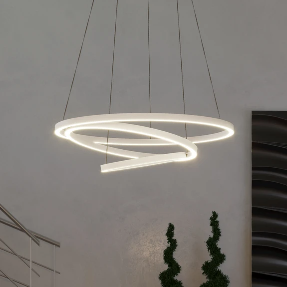 Adjustable Lobinero-Z LED pendant light, ring-shaped This modern LED pendant light with the name Lobinero-Z comes from the smart, ZigBee 3.0-based range from EGLO connect and impresses not only with its controllability but also with its appearance. Consisting of three ring-shaped LED profiles, this light diffuses its light evenly in all directions. The angle of the rings can be individually adjusted. Controlled via the free AowX HomeControl App, it is possible to vary the light colour and dimmable the light brightness. There are also functions such as creating groups with other lights or integration into schedules and scenes. Functions / compatibility: - controllable with the free AwoX HomeControl App - compatible with smart home systems from other manufacturers that use ZigBee 3.0 - direct connection with Amazon Echo and Google Home possible - increased range thanks to additional Bluetooth Mesh - up to 50 lights or bulbs can be controlled simultaneously - compatible with all articles in the EGLO connect-c Bluetooth series - controllable with suitable remote control even without internet access (see accessories)