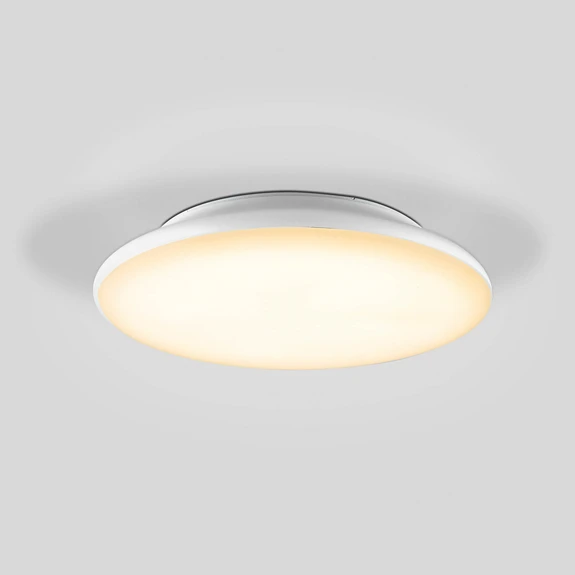 Modern Catino LED ceiling light with motion sensor The Catino LED ceiling light is equipped with a motion sensor as standard. If movement (below 10 lux) is detected, the light switches on for 30 seconds. The light colour in which it should shine can be set before installation using the CCT switch. You can choose between warm white light (3,000 K), universal white light (4,000 K) and daylight (5,700 K). The Catino LED ceiling light is made of high-quality, UV-resistant plastic and its ultra-flat design keeps it discreetly in the background. However, it offers a large-area light emission and therefore an extremely large beam angle. This achieves very good and homogeneous illumination. The Catino LED light is therefore ideal as a ceiling light for communal areas in companies, but is also welcome as a reliable light source for private use, for example above the entrance to a house outdoors. - protected against dust and splash water (IP54) - impact resistance IK06 - extremely wide beam (approx. 120 °) - motion sensor detection radius: 5 metres (mounting height 3 m)