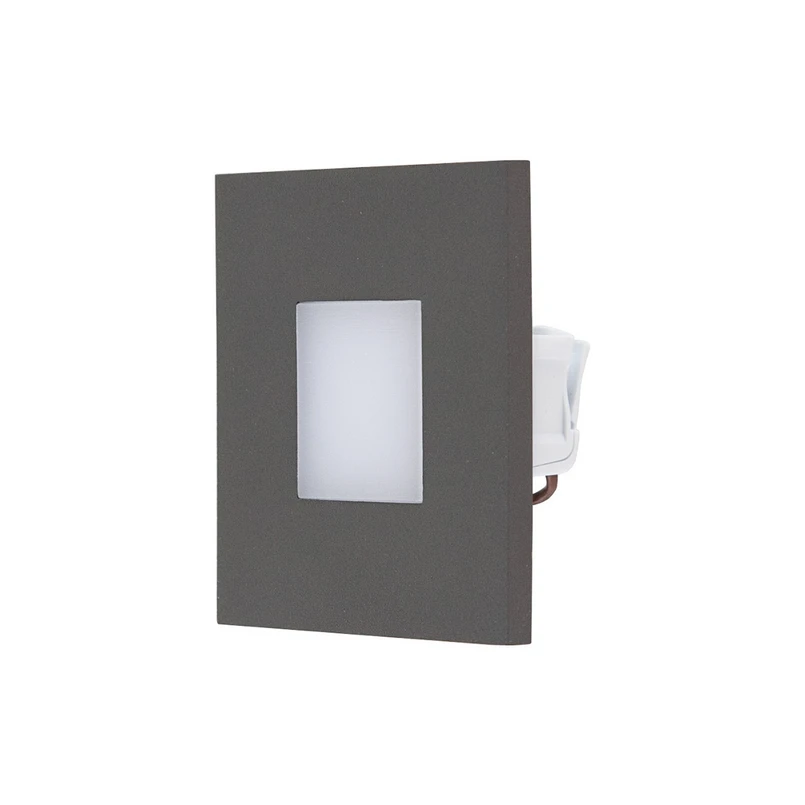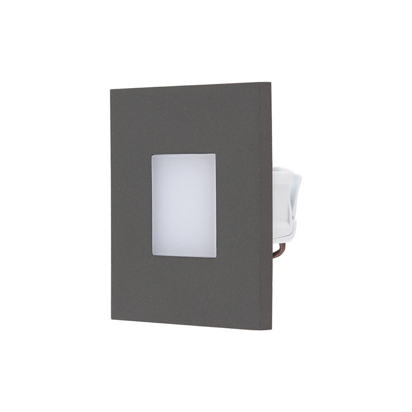 Square LED recessed wall light LQ230 - 1-bulb, direct distribution With this modern recessed light for the wall, hallways, corridors and staircases in both private and commercial areas can be equipped with optimum orientation lighting. Direct mounting using two screws is possible, as is mounting on a deep switch box. The cover frame is made of stainless steel and is magnetic, making it easy to attach. The light is distributed symmetrically and diffusely through a flat, opal plastic cover on the Front. IP code IP44 is achieved thanks to a built-in seal at the rear - Through-wiring possible - Direct connection to 230 V - Can also be used in furniture construction