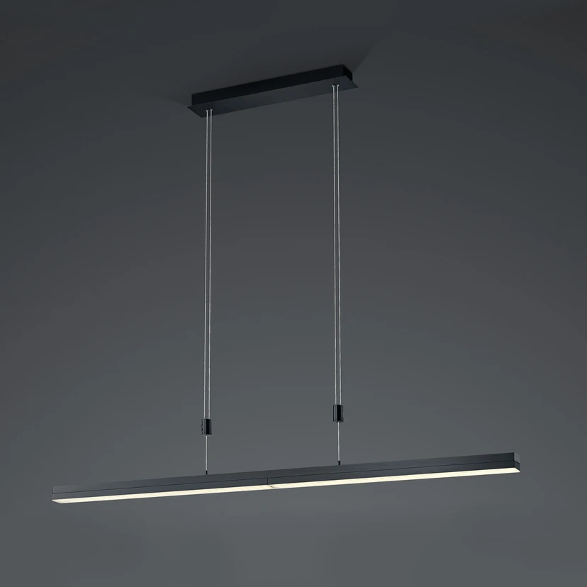 Adjustable LED pendant Expanda-X, with sensor dimmer The modern LED pendant Expanda-X is not only variable in height, but also in length and easily adjustable. This makes it perfect for lighting above tables, especially on extendable versions, so the light grows or shrinks with it, depending on the size of the table required at the time. For this purpose, the integrated LEDs of the modern pendant lamp Expanda-X are dimmable and adjustable in color temperature. A sensor dimmer adjusts the light from a warm white hue to a cool daylight. This is perfect for the different needs, such as the cozy gathering in the evening or even the effective work, which can take place at a table so.