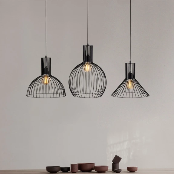 The Fellini MR-768 hanging light impresses with its modern design and the use of high-quality iron in elegant black. This 3-bulb, linearly arranged light fits seamlessly into various living spaces such as living rooms, dining rooms and kitchens. The clean lines and timeless material make it a stylish eye-catcher that adds a special touch to any room.