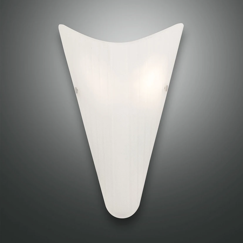 The wall luminaire Fly is characterised by its V-shaped optics. It has a pretty lamp shade made of pressed glass, which refracts the light in a pleasant way and gives the room a harmonious atmosphere. In addition, the light can escape upwards, which ensures adequate lighting. The glass is not smooth, but has symmetrically arranged grooves that run along the length of the lamp. The luminaire can be combined with various interior design styles - it is particularly suitable as a supplementary light source for a classically furnished living room or in the hallway.