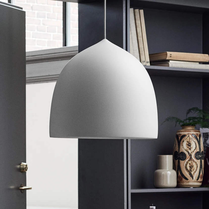 Design pendant light Suspence™ in Scandinavian style The design of the Suspence™ pendant light picks up on Scandinavian functionalism, where form and function take centre stage but form a perfect symbiosis with aesthetics. GamFratesi, the creative minds behind this luminaire design, were inspired by the movement of a drop of water floating in the air. The result is a lampshade made of aluminium with a soft, flowing shape that radiates perfect harmony. The light that Suspence™ emits directly downwards through a white polycarbonate diffuser also has a harmonious effect. GamFratesi is the name combination of architect Stine Gam from Denmark and architect Enrico Fratesi from Italy, who, thanks to their cross-cultural backgrounds, can draw on the classic Danish design and craftsmanship tradition as well as the classic Italian intellectual and conceptual approach. A minimalist design language characterises GamFratesi's designs, and this fascinating pendant light, which suits many modern interior design styles, is produced by Danish manufacturer FRITZ HANSEN, a company founded in 1872 by cabinetmaker Fritz Hansen when he was granted a trading licence for Copenhagen. Already in the first half of the 20th century, FRITZ HANSEN was known for its first-class quality in furnishing major projects, such as the Supreme Court in Copenhagen, the University Library and the City Hall in Copenhagen. FRITZ HANSEN has always worked with well-known architects and designers, including Arne Jacobsen, Anne Qvist, Bodil Kjær, Cecilie Manz, Hans J. Wegner, Christian Dell and many others. After almost 100 years of pure family ownership, 75% of the company shares were transferred to Skandinavisk Holding in 1979, which led the company into the new millennium with extensive innovations.
