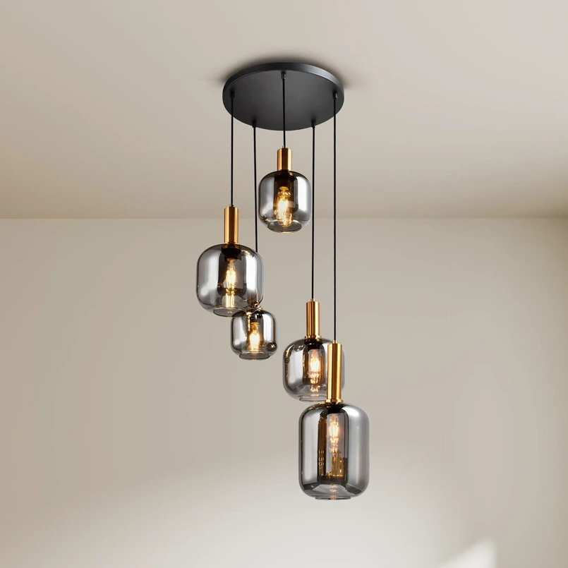 Fumo pendant light, smoked glass, 5-bulb, circular