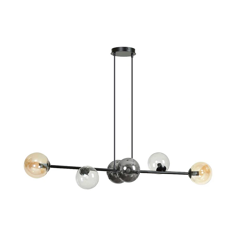 Glassy pendant light, 6-bulb, graphite/amber/clear, glass, 110 cm