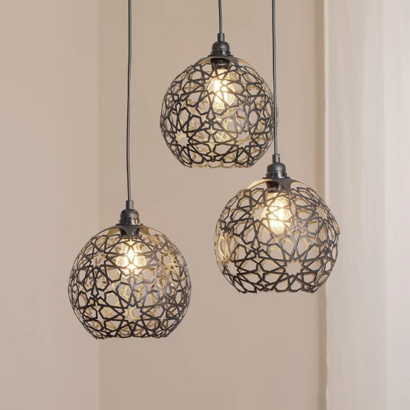 Fellini MR-787 hanging light: elegance meets functionality The Fellini MR-787 3-bulb round black hanging light represents a modern style that blends seamlessly into the aesthetics of the living room, dining room or kitchen. Manufactured in Europe, this lighting element epitomises quality and design. The 3-bulb rondel construction creates an atmosphere that can be both inspiring and cosy, depending on how it is integrated into the room. Although a dimmer is not included with this model, the intensity of the light can be adjusted via an external dimmer, allowing the lighting to be individually adapted to the desired mood. The Fellini MR-787 hanging light is an example of how light can significantly influence the ambience of a room without being intrusive.