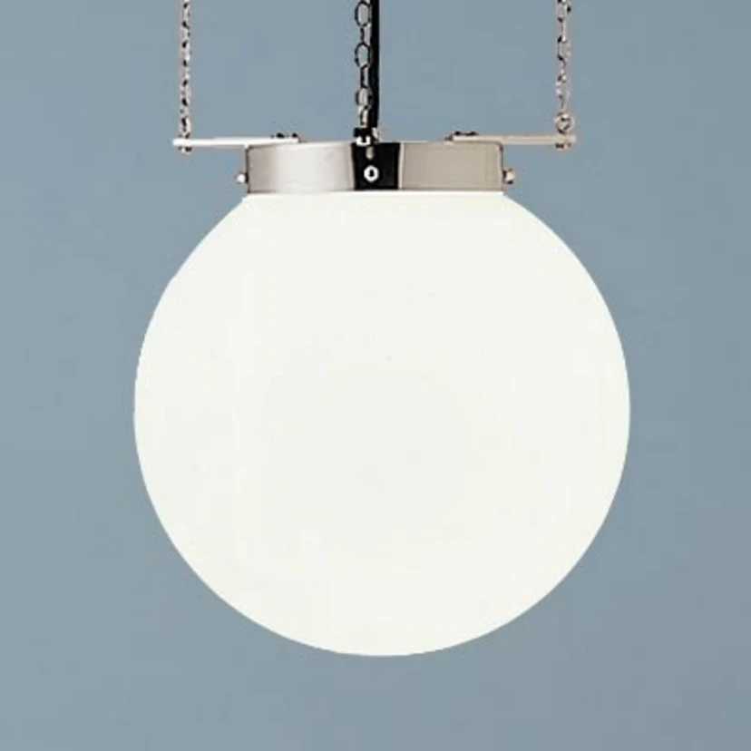 This hanging light in Bauhaus style was designed in 1928 by Marianne Brandt, one of the best known German designers of the Bauhaus. It is a variation of her design of a ceiling light with three rods and it now comes with three chains (length is always 100 cm). Also in this new interpretation of the classic from 1926, the design convinces unconditionally with its multiple hanging and its simple but effective opal glass ball that perfectly corresponds to the Bauhaus style together with the other components.