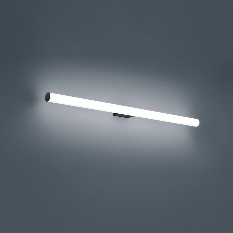 LED wall light Loom for uniform mirror light The wall mount of the LED mirror light Loom is made of matt black lacquered metal and is centred on the back of the tubular diffuser. The latter is made of satinised acrylic to ensure a homogeneous and glare-free lighting effect. Mounted vertically next to the Spiegel or horizontally above it, Loom creates perfect lighting conditions. Built to IP code IP44, the mirror light is also resistant to splashes of water. With its simple design, reduced to the essentials, Loom is the ideal choice for the cloakroom or bathroom in modern interiors.