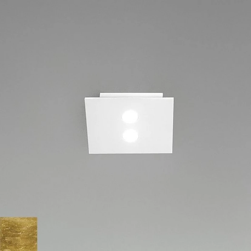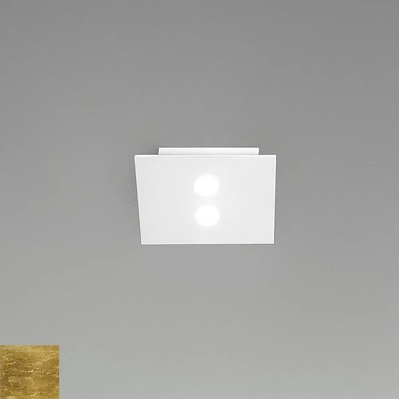 Slim LED ceiling light in a small format The square Slim LED ceiling light has a flat design and is made of high-quality aluminium. With its highly efficient technology, it saves a lot of energy. Two LEDs with 800 lumens are installed, providing a warm white light that is evenly distributed. Slim is ideal for any modern room that requires a discreet light source. The ceiling light is available in a white lacquered finish or with a gold leaf finish.
