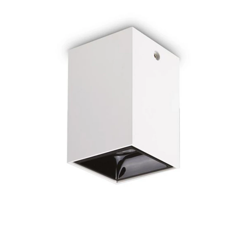 Angular Nitro Square surface-mounted LED downlight for warm white interior lighting The Nitro Square LED ceiling light is a functional downlight for direct general and task lighting indoors. Nitro Square is made of metal and has a cuboid shape. The warm white LED light source is recessed in the housing so that there is no glare away from the directly illuminated area - good colour rendering: CRI 90 - minimised glare: UGR < 19