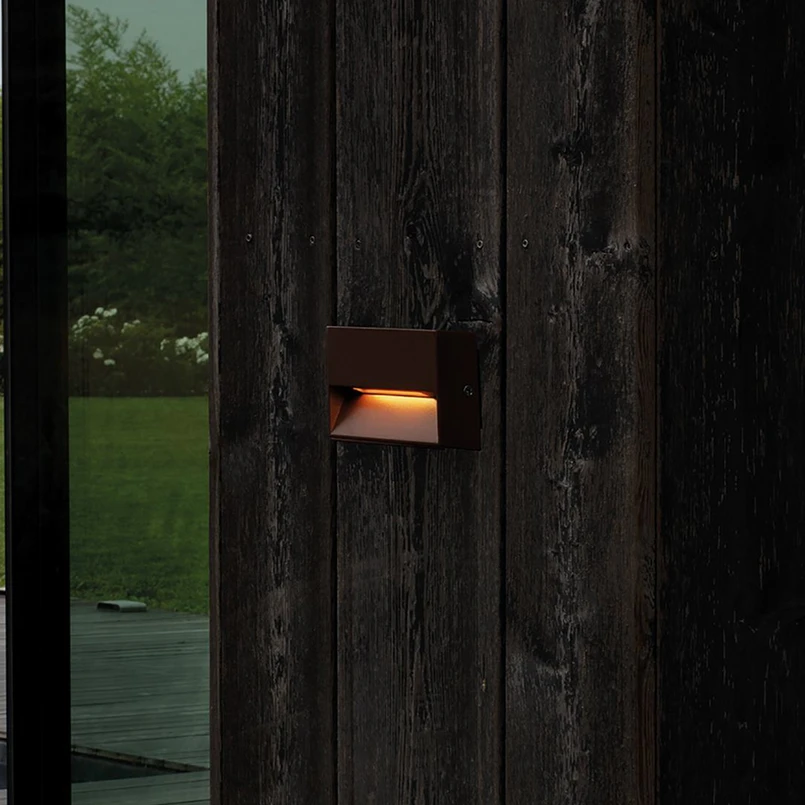 Dedra cuboid LED outdoor wall lamp - modern orientation light The Dedra outdoor wall light provides useful orientation lighting on staircases and footpaths along the façade. The cuboid housing with a rectangular base is made of metal and aluminium. The warm white LED light source integrated at the rear of the front emits the light downwards, providing glare-free illumination of the neighbouring floor area - IP code: IP65