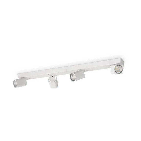 4-bulb Rudy Square downlight with angular design The Rudy Square downlight is a versatile source of light for modern living rooms, lounges and business premises. It is made of die-cast aluminium and metal and consists of a long, rectangular canopy and four rectangular spots. The latter are adjustable and equipped with GU10 sockets. Matching LED bulbs with warm white light are included.