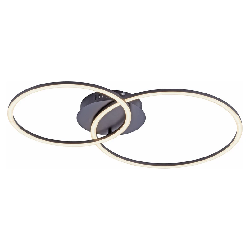 Dimmable Ivanka LED ceiling light with two light rings The modern Ivanka LED ceiling light is made of metal and has two light rings as a light source. The rings are different sizes and shine downwards over their entire circumference. The upper, smaller Ring can be swivelled, allowing the direction of the ceiling lamp to be changed. Thanks to its low height and flat design, it can be easily integrated into numerous rooms and adds a trendy Akzent to many interior styles. Thanks to the simple Simply Dimmable technology, Ivanka can be dimmed continuously using the wall switch. This allows the light brightness to be optimised to suit the situation, time of day and personal preferences. Once the desired light intensity has been reached, it can be set by switching the light off and is saved thanks to the memory function, so that Ivanka shines with the previous brightness when it is switched on again - Light output of the light fitting: max. 2,200 lm Young and dynamic values characterise the JUST LIGHT. brand. - formerly known as Leuchten Direkt.