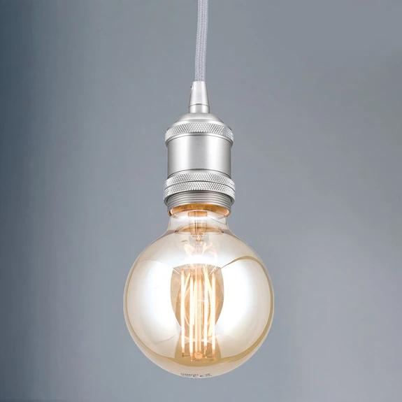 All lamps with the matching base can be inserted into the E27 socket. However, vintage LED light sources (filament) are preferable, which both meet decorative requirements and score points for energy efficiency. Appropriate lamps can be ordered via the accessories.