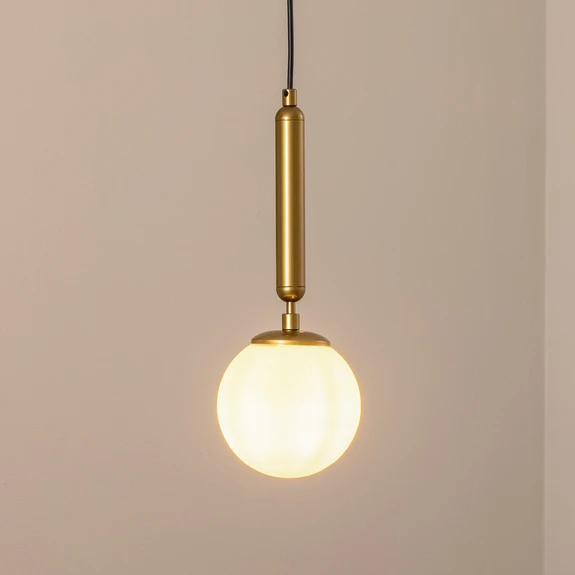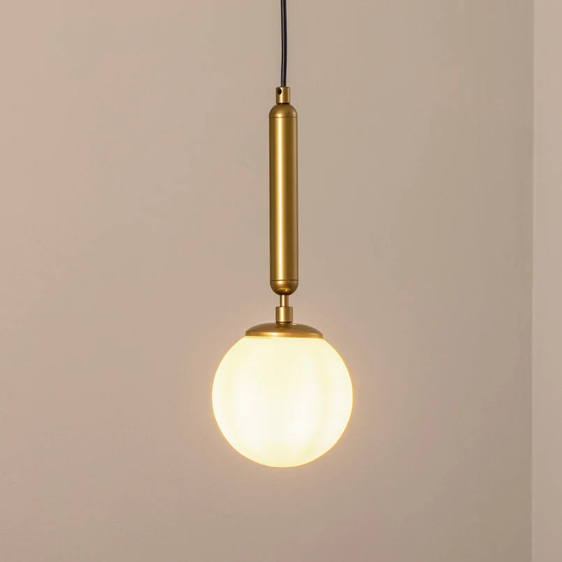King pendant light, gold/opal, glass, Ø 15 cm, E14