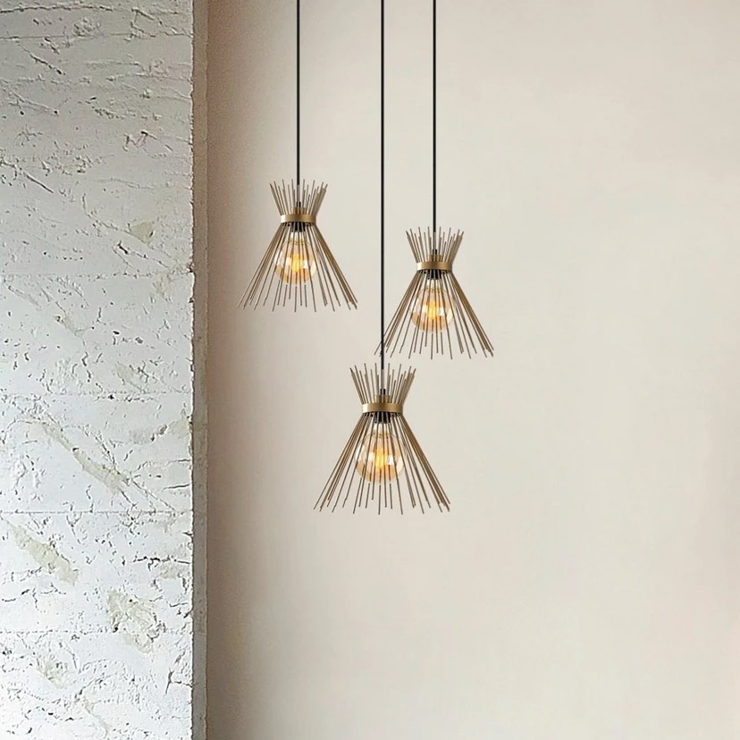 Kirpi 3086 pendant light, gold-coloured, metal, 3-bulb round