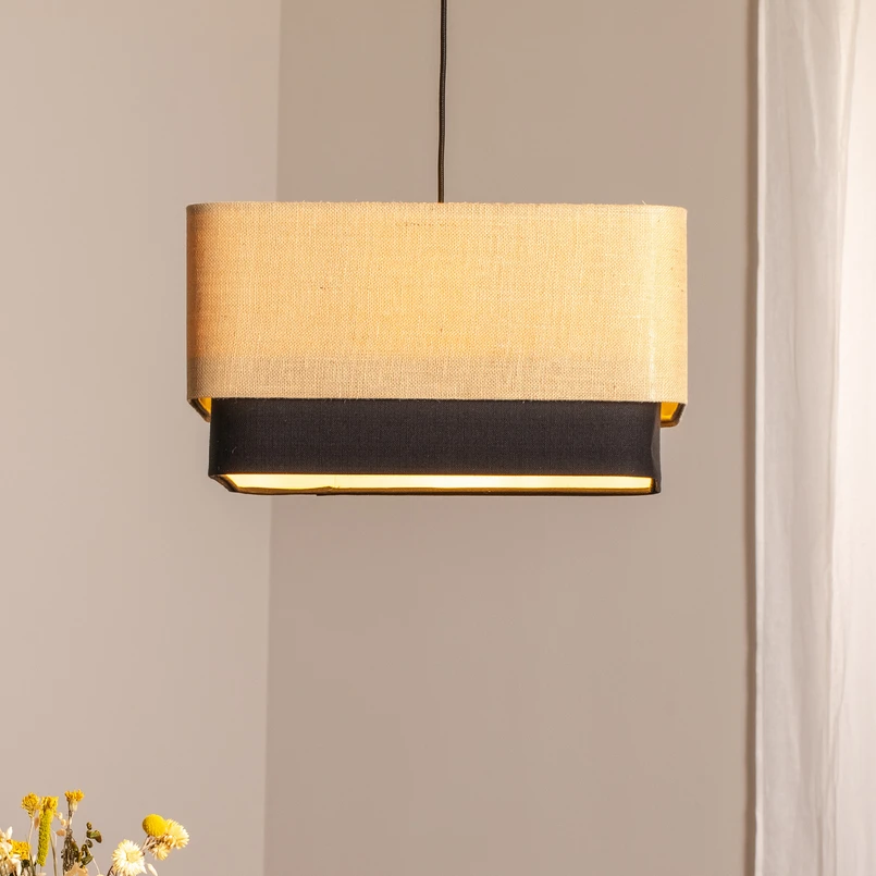 Kwadro Duo textile pendant light: elegance meets functionality The Kwadro Duo pendant light combines the warmth of jute with the elegance of satin in its design to create an atmosphere that is both inviting and stylish. Made in Europe, this light epitomises quality and local craftsmanship. With its presence in living rooms, dining rooms or bedrooms, it not only makes a statement, but also offers the flexibility to adjust the lighting to suit any mood via an external dimmer. Although a dimmer is not included, compatibility with external dimmers allows for customised lighting design.