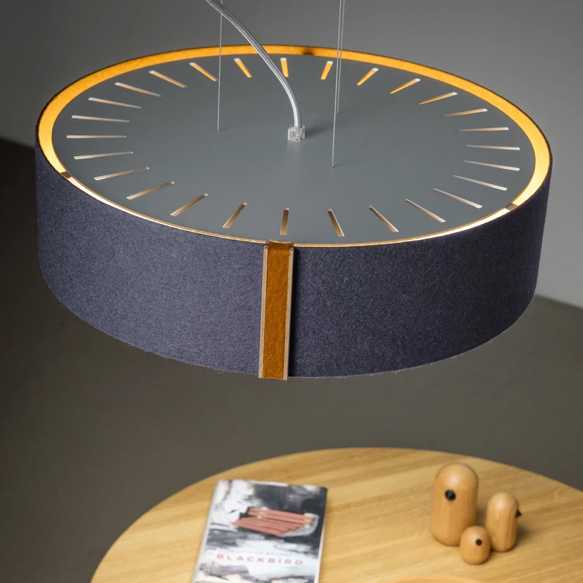 Decorative LARAfelt M LED pendant light in felt look The LARAfelt M pendant light blends perfectly into any living situation thanks to its understated design and simple colour scheme. It creates beautiful Akzent both as a stand-alone lamp and in combination with other lights in the series. The use of natural materials such as felt and wood and the warm white light create a cosy atmosphere in the room. Fine indentations on the top of the pendant light also ensure that light is directed towards the ceiling, which further enhances the pleasant lighting in the room. The light is attached to the ceiling using a three-point suspension. With an external leading edge or trailing edge phase dimmer, it is possible to adjust the brightness of the light ideally to the respective lighting conditions and requirements. The light manufacturer DOMUS is characterised by its sustainable production methods. Wherever possible, renewable raw materials are used to manufacture the products. With its production site in Germany, Domus is committed to the high environmental protection requirements and therefore also offers shorter transport routes and a low environmental impact.