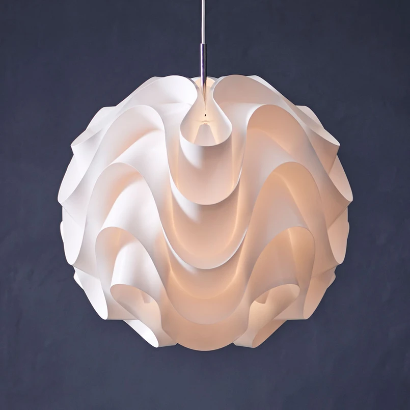 Hand-folded Danish designer pendant lamp 172Scandinavian design is nowadays considered particularly timeless and stylish. The 172 pendant lamp proves that this was already the case a few decades ago. Its design comes from the Swedish designer Poul Christiansen, already from 1971 and still enjoys great popularity. The white shade is produced with a special folding technique, which is still done by hand, as no machine has been able to meet the quality demands that the designers place on the folded end product. The folding umbrella is therefore always unique and should be treated with care in order to enjoy it for a long time. In addition, the material produces a beautiful warm light that illuminates the entire room without glare. The Danish designer lamp manufacturer Le Klint has been producing lamps by hand since 1943 and has since brought many designs onto the market that are still being produced decades later and still enjoy great popularity. The folding shades made of special white plastic are the trademark of the designer lamps with the Scandinavian flair. Made in Denmark.