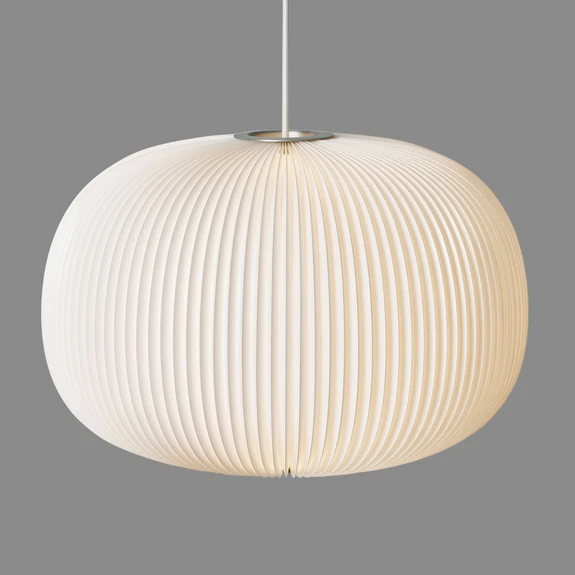 Handmade shade: Designer pendant lamp Lamella 1The two designers Hallgeir Homstvedt and Jonah Takagi have taken inspiration for their pendant lamp Lamella 1 from nature, namely from mushrooms. On the underside of many mushroom heads are lamellae, similar to those found on the appropriately titled Lamella lamp model. The spherical lampshade is laid throughout in small folds that look like lamellae. The white, slightly shiny and translucent foil was folded and shaped by hand for this purpose. The typical folded lampshades by Le Klint have a long tradition. The two designers Hallgeir Homstvedt and Jonah Takagi, who run studios in Oslo and Washington, have incorporated the traditional design and the special Plica folding technique into their contemporary designs and modernised them. Already at the beginning of the 20th century, the first folding umbrellas were made by hand by the renowned Klint family of architects, until finally in 1943 the official foundation of the company and the opening of the first shop in Copenhagen took place. Today, Le Klint still sees itself as a manufactory that combines traditional craftsmanship with modern design.