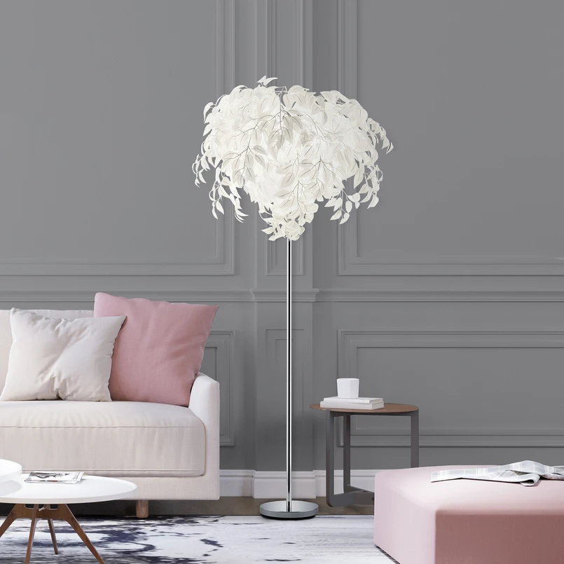 Leavy floor lamp, height 180 cm, chrome/white, metal/plastic