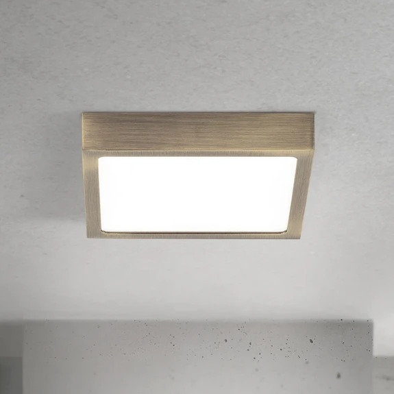 The LED ceiling lamp Disc impresses with its modern design made of aluminium and plastic in an elegant combination of antique brass and white. With its compact design, it fits seamlessly into various living areas such as the living room, dining room, kitchen or hallway. The integrated LED light source provides uniform and energy-efficient illumination.