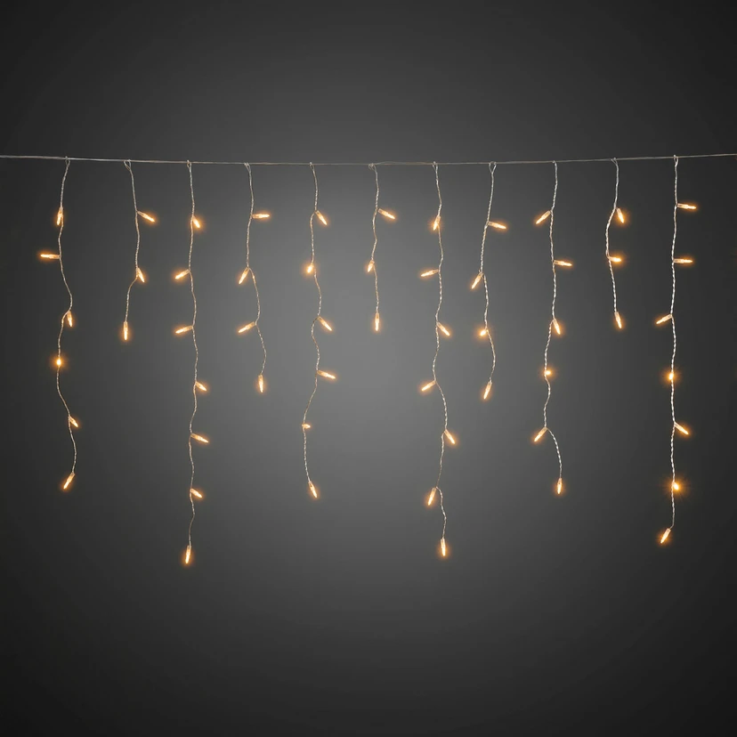 Enchanting LED curtain light Ice rain With this curtain light, which is effectively illuminated by amber-coloured LEDs, balconies and roof edges can be festively decorated. The Ice Rain curtain light illuminates the dark winter night with its warm glow and adds a magical touch to the Christmas season. 24 volt outdoor transformer - Cable: transparent