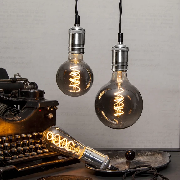 Heavy Smoke Filament LED globe bulb E27 4W, 2,100K This LED globe bulb with darkened glass, warm white LEDs and a filament in retro design produces a soft and warm light that is perfect for decorative lighting in many different lights. Features: - very warm light colour 2,100 K - darkened glass - dimmable