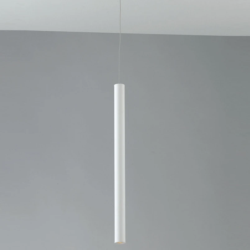 Oboe pendant light - elegant design variant for a three-circuit track lighting system With its simple yet harmonious design, the Oboe LED pendant light is the perfect choice for modern living spaces. It takes the form of a tall, rod-like cylinder. The warm white light from the built-in LEDs is emitted directly downwards. Thanks to installation with the supplied track slide, Oboe can be positioned to suit the conditions in the room.