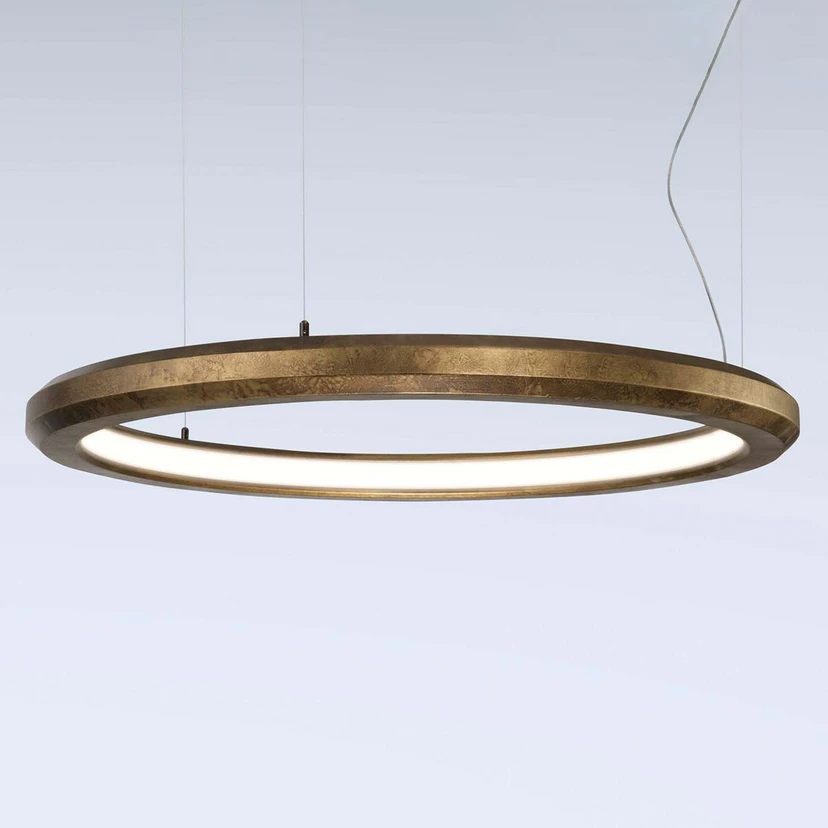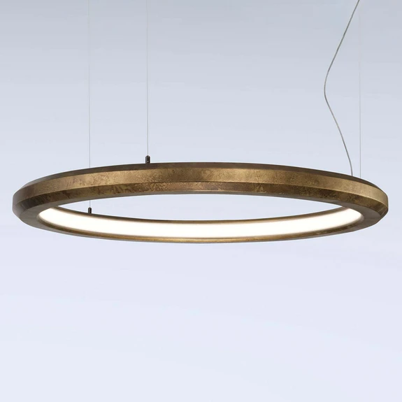LED designer hanging light Materica made of concrete with a brass finish With the LED hanging light Materica, designer Roberto Giacomucci has created a high-quality and elegant light for spacious living and lounge areas based on a simple basic design. The inward-illuminating LED strip is surrounded by a circular concrete structure, which is given a graceful shine thanks to the brass finish.