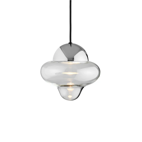 LED pendant light Nutty, clear / chrome-coloured, Ø 18.5 cm, glass