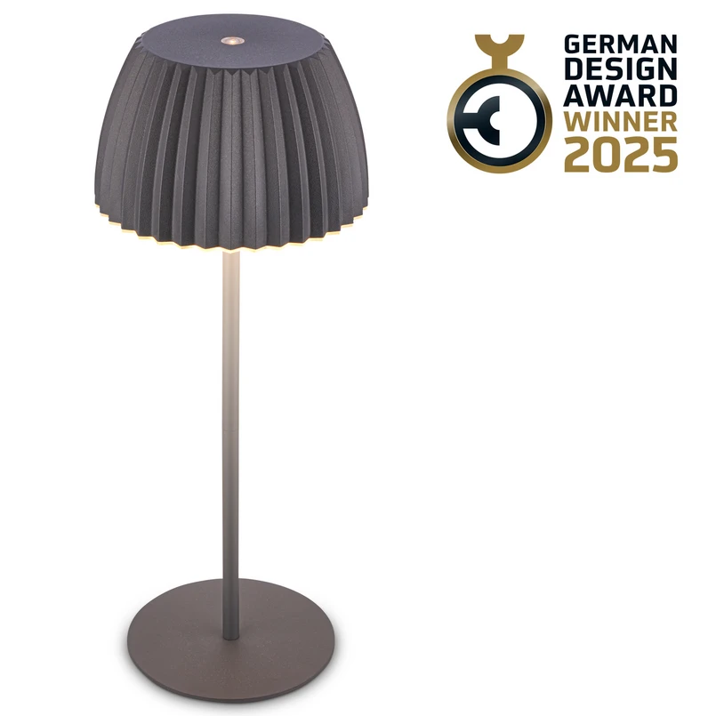 The Brilo unplugged Riffle LED table lamp combines stylish design with practical functionality. Made from high-quality metal and plastic, it offers a robust yet elegant solution for lighting patios, balconies, living rooms and hallways. With an IP code of 44, it is ideal for use in protected outdoor areas. The permanently integrated LED light source provides energy-saving, warm white light with a colour temperature of 2,700 K, creating a pleasant atmosphere.