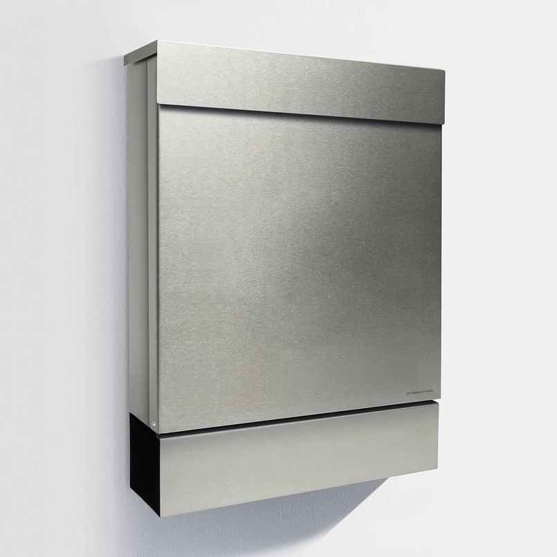 Modern design - Letterman M letterbox The Letterman M letterbox has a very simple and modern look, but offers the same functionality as its "big brothers". Thanks to its stainless steel and powder-coated finish, it is particularly durable. The Letterman M requires letters to be posted at the top and offers space for letters up to C4 size - without creasing. The newspaper holder, which is open on both sides, offers enough space for the daily newspaper and is attached directly under the letterbox in the classic way. The delivery includes a stainless steel nameplate and a lock with two keys.