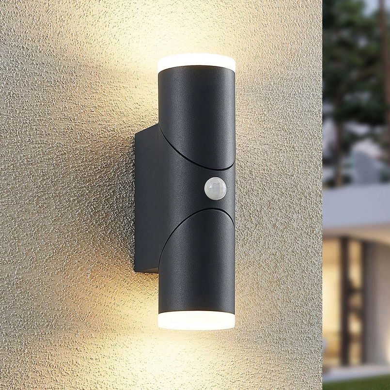 Two-light LED outdoor wall lamp Aspyn with practical motion sensor
