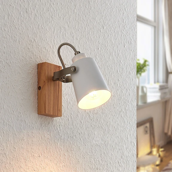 The Blana wall luminaire captivates with its discreet look, which can be easily integrated into different interior design styles. Light-coloured rubber wood was chosen for the mounting plate, which gives the luminaire a warm and inviting character.