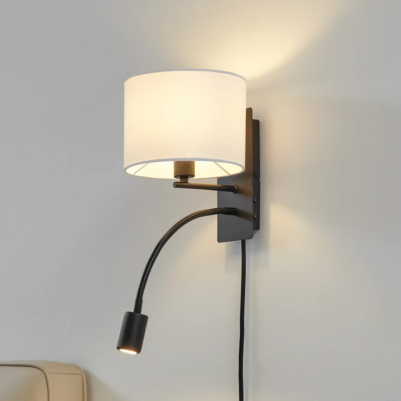 The Florens wall light combines modern Scandinavian design with functional lighting. Made from high-quality textile and robust iron, the lamp fits seamlessly into living rooms and bedrooms. Florens has a harmonious colour combination of white and black and blends into a wide variety of interior styles.