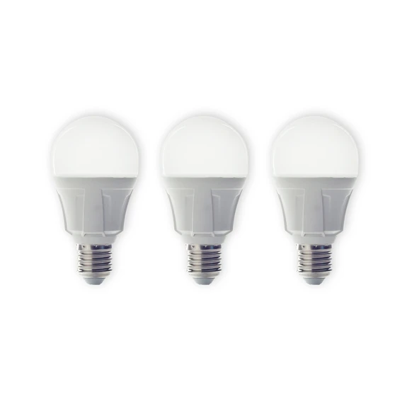 E27 8.5W LED bulb in bulb shape, matt, warm white - in a practical set of 3 Thanks to the shape adapted to a traditional light bulb and a warm white light colour of 3,000 K, this LED bulb is particularly suitable for use in living and office spaces and replaces a conventional bulb of up to 60 W. The bulb impresses with its high efficiency combined with very low energy consumption and a very long service life of up to 30,000 hours.
