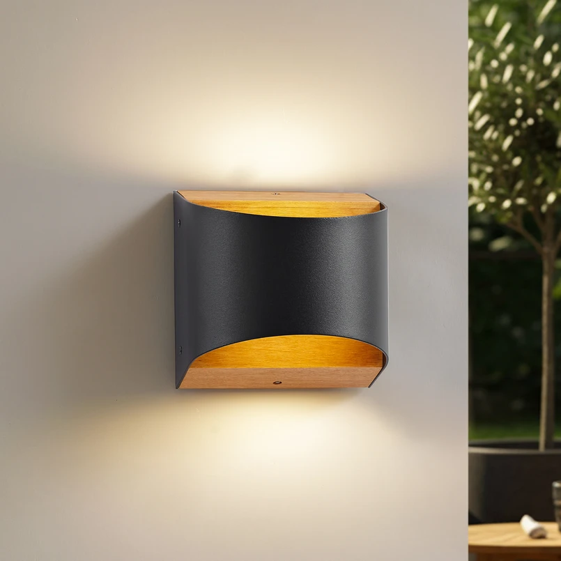 Lenore LED outdoor wall light in aluminium and teak wood – the perfect companion for outdoor areas