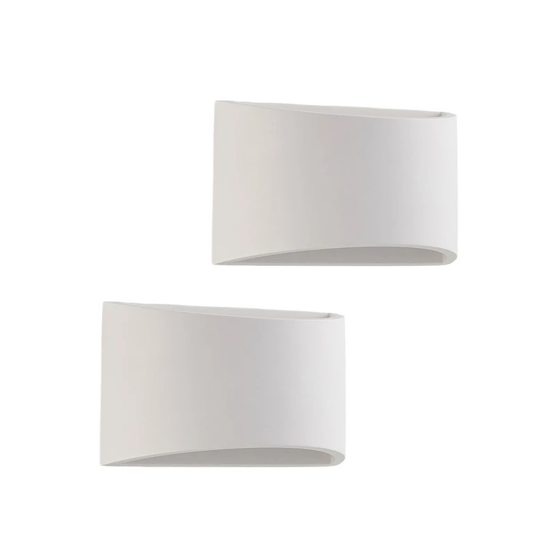 Heiko - white plaster wall light in a set of 2 With this wall light, the light shines upwards and downwards in an effective and, above all, cosy way. The body of the light has a semi-circular shape, which is perceived as appealing and attractive and can be combined with a number of styles. If you would like to match the colour of the wall light, you can confidently pick up a paintbrush, as plaster wall lights are very easy to paint over - the wall light is supplied in a practical set of 2