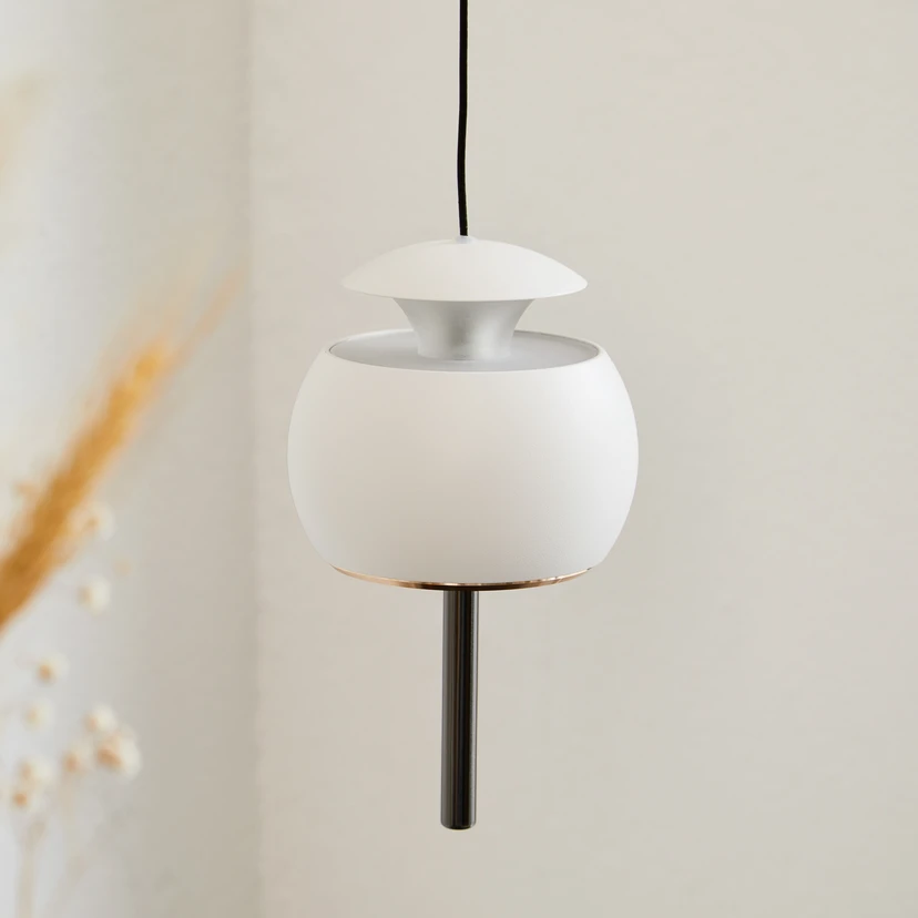 Round Parachute LED pendant light - upward and downward distribution, height-adjustable and dimmable The Parachute LED pendant light is equally impressive in living rooms and lounges and serves as an eye-catcher in numerous interior design concepts. The round, aluminium lampshade has a trendy colour finish. The warm white light is emitted at the bottom via six recessed outlets; there is also a ring-shaped light opening at the top. The pendant height can be intuitively adjusted by lifting the lampshade upwards or pulling it downwards. The brightness can also be adjusted externally using the TRIAC dimmer.