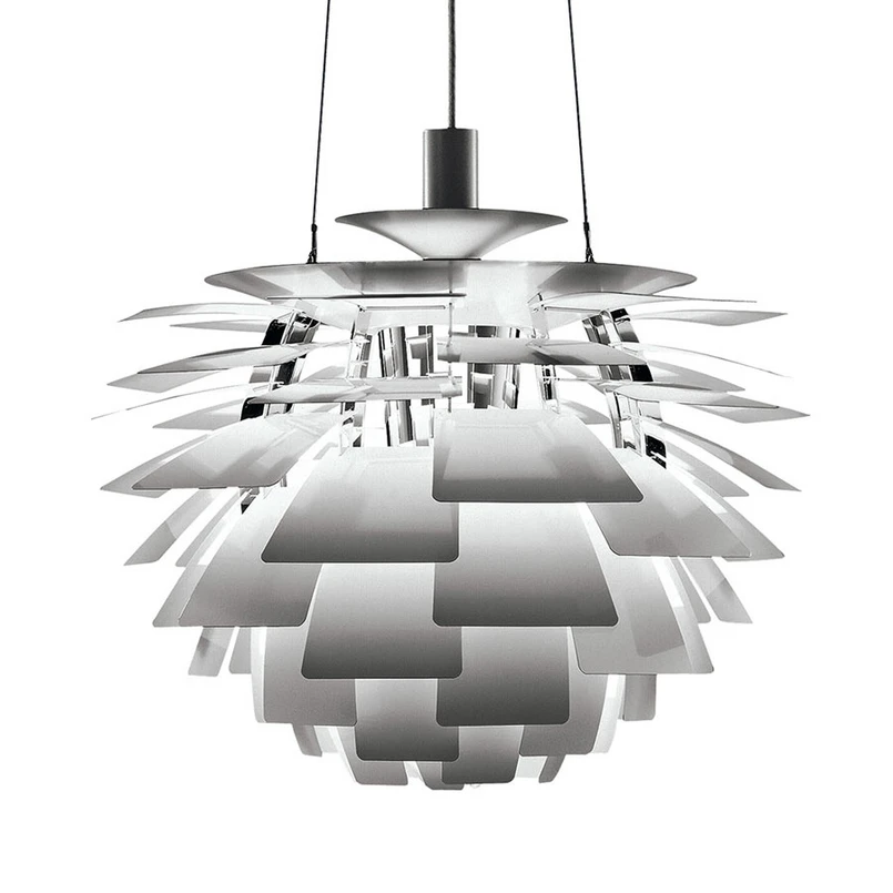 Extravagantly designed PH Artichoke pendant light - a design icon This fantastic pendant light was created back in 1958 by Danish designer Poul Henningsen for the Langelinie restaurant in Copenhagen, where it still hangs today. The unique shape of the luminaire body, which is made up of 72 leaf-like elements, characterises the PH Artichoke and is reminiscent of a sculpture. No matter from which side you look at the PH Artichoke pendant light, the result is completely glare-free lighting. Even today, the PH Artichoke is still largely handcrafted to ensure consistent first-class quality. With this luminaire object, Poul Poul Henningsen, who throughout his career was always looking for new ways to transport glare-free light into the room, has created a true design icon that enjoys a high level of recognition worldwide.