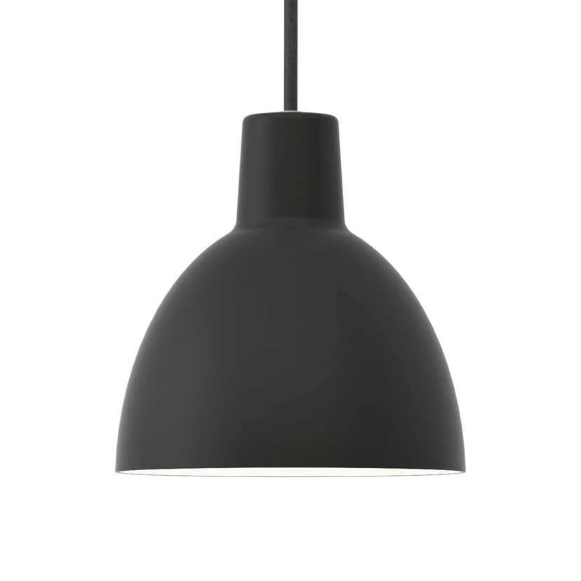 Simple and versatile Toldbod 170 pendant light by Louis Poulsen The Toldbod 170 pendant light has a matt lampshade made of drawn aluminium with a diameter of 17 cm. The Innes of the lampshade is painted white, ensuring an even, glare-free distribution of light. The design of the light is minimalist and has no distracting details, making it flexible to use. It can be used as targeted lighting above a dining table, for example, but also in a row or group installation. For the lights in the Toldbod range, the Danish brand manufacturer Louis Poulsen was inspired by the reflector part of the PH Eclipse by designer Poul Henningsen. Die lights were launched on the market in the 1980s and are still very popular today. The manufacturer's philosophy of giving light Form and thus positively influencing space and people was once again more than justified with Toldbod 170.