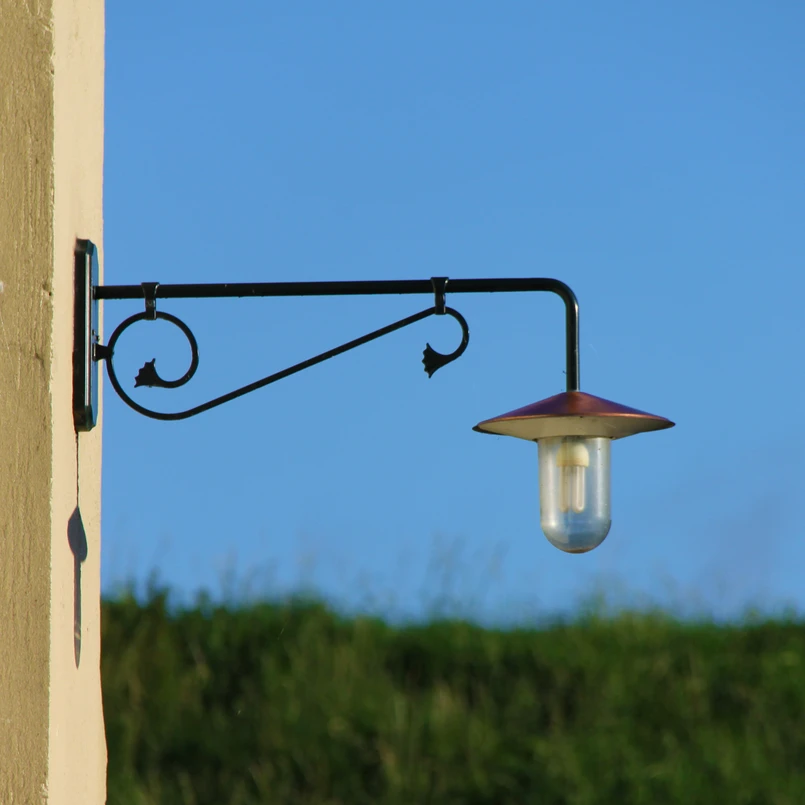 Louvre outdoor wall light with long bracket Thanks to its timeless appearance, this outdoor wall light is a real gem for any outdoor area. The long bracket makes the light an interesting eye-catcher. The large glass provides adequate lighting.