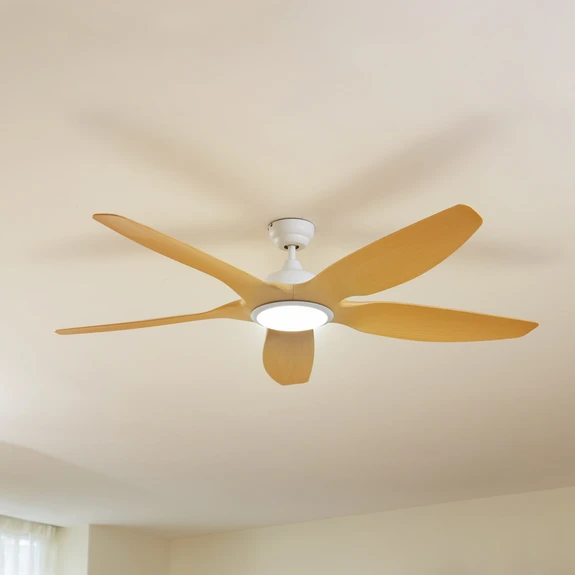 Omendo LED ceiling fan made of metal with blades in beech wood look