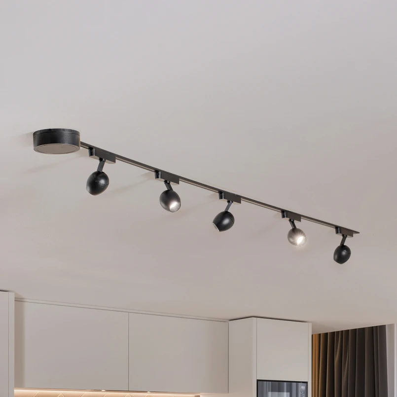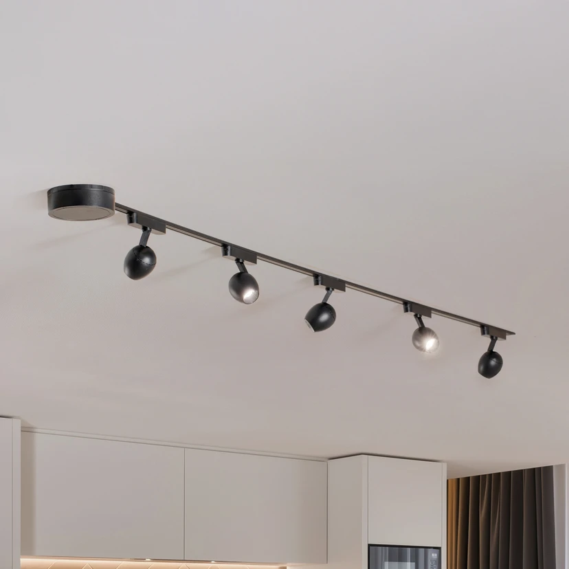 Lumaro track lighting system,5-bulb,black,Ø6cm,48V,dimmable
