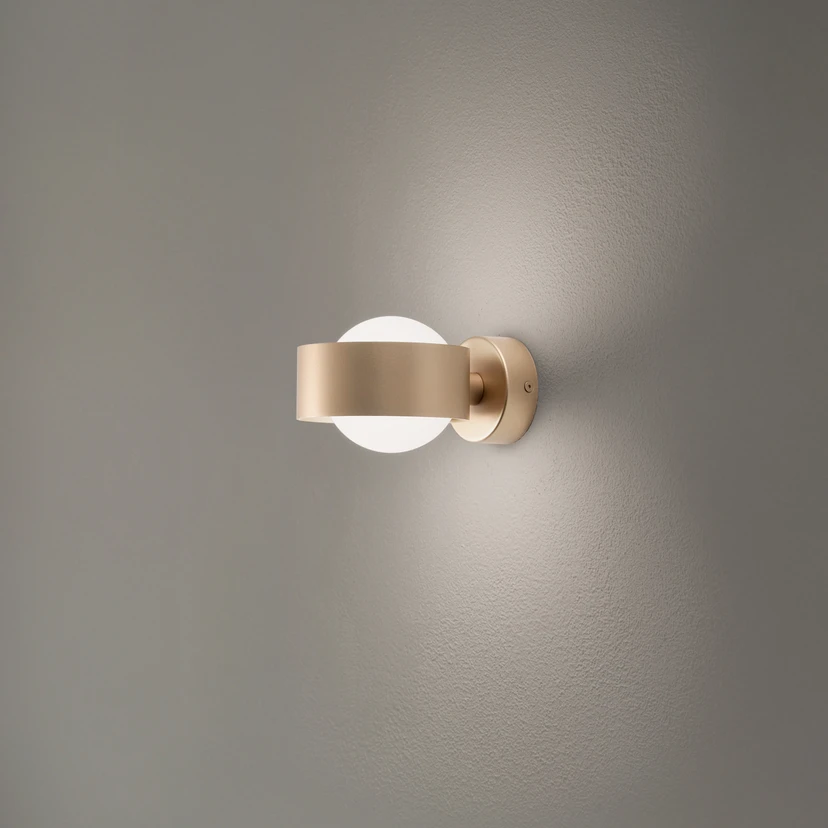 The Mado wall light combines modern design with high-quality materials and is made of metal and glass. The combination of opal white glass and brass-coloured metal gives the light a timeless elegance that can be seamlessly integrated into various interior styles. A particularly noteworthy feature is the option of dimmability via an external dimmer, which allows the light intensity to be flexibly adjusted to suit any mood.