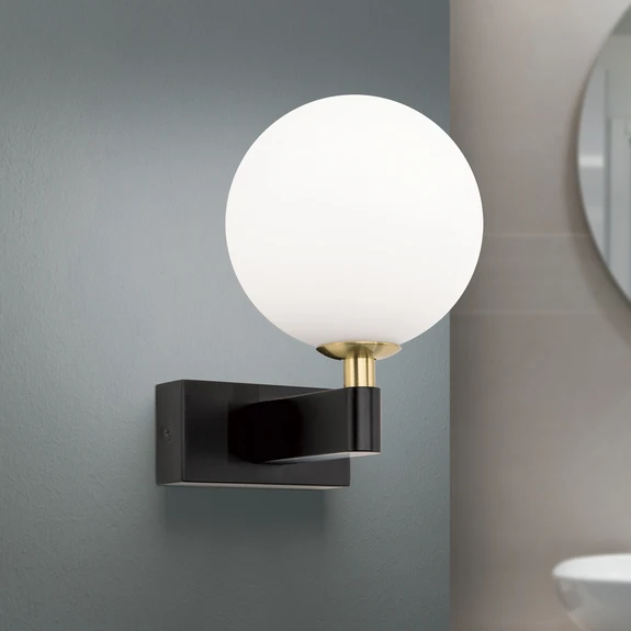 Mara wall light, black, glass, 17.5 cm high, G9, IP44 Delivery time: 9 - 13 working days