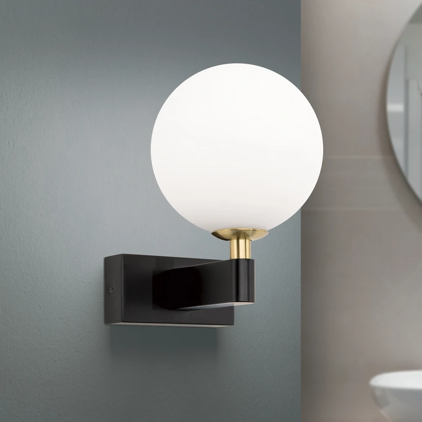 Mara wall light, black, glass, 17.5 cm high, G9, IP44